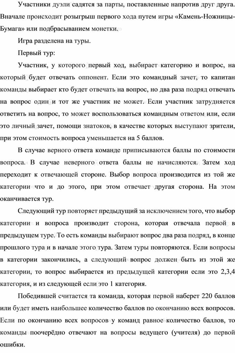 Участник, у первый ход, категорию и вопрос, на будет отвечать . Если это командный , то капитан выбирает кто будет на вопрос, но два раза отвечать на вопрос и тот же участник не . Если участник ответить на вопрос, то воспользоваться командным или, если это зачет, помощи , в качестве которых зрители, при этом вопроса на 5 баллов.