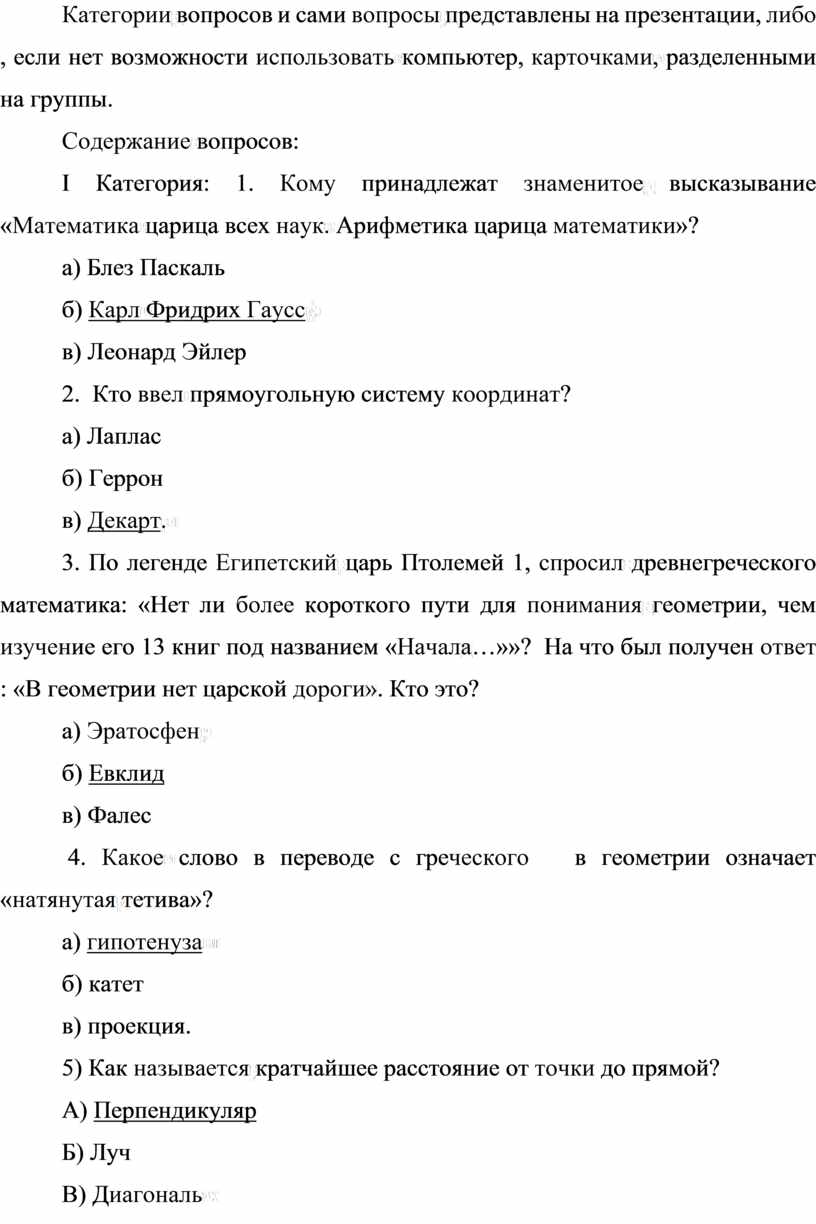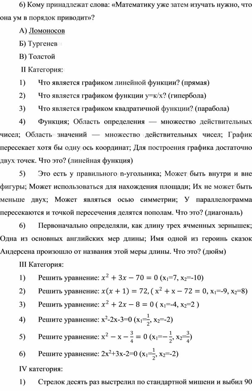 четыре категории : на 10, 15, 20 и 25 баллов. вопросов отличаются . В каждой категории вопросов на разные и геометрические , каждый из которых быть практического или содержания.