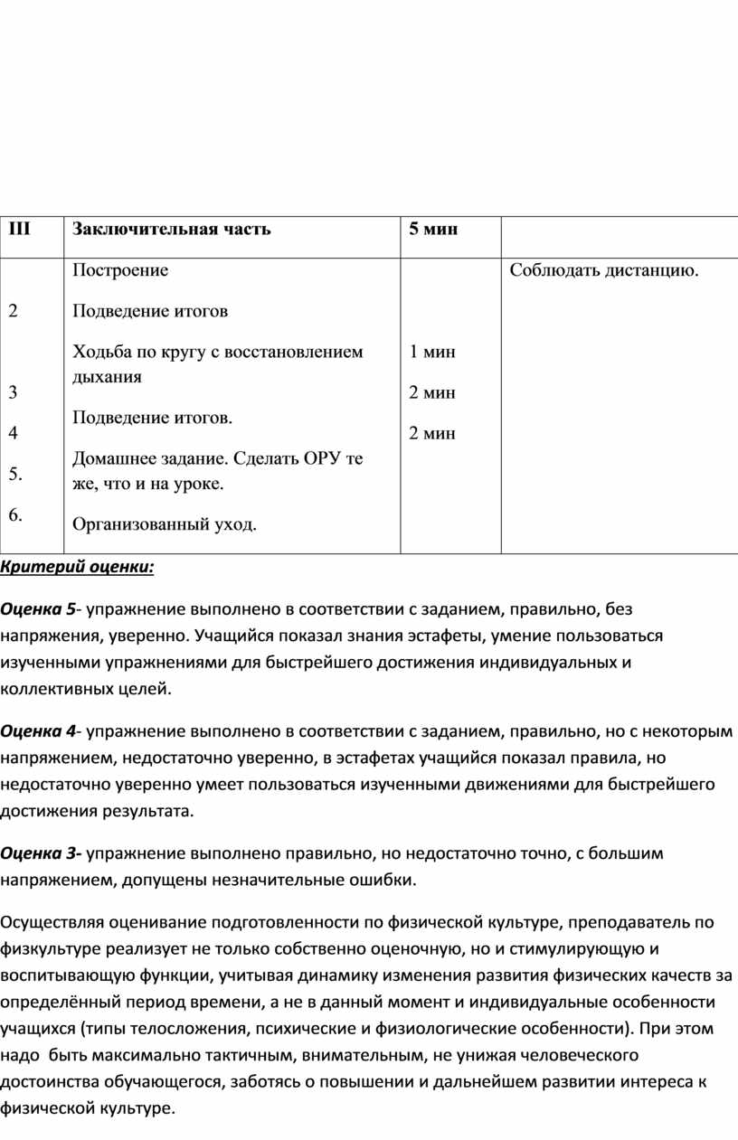 Оценка 5- упражнение выполнено в соответствии с заданием, правильно, без напряжения, уверенно. Учащийся показал знания эстафеты, умение пользоваться изученными упражнениями для быстрейшего достижения индивидуальных и коллективных целей.