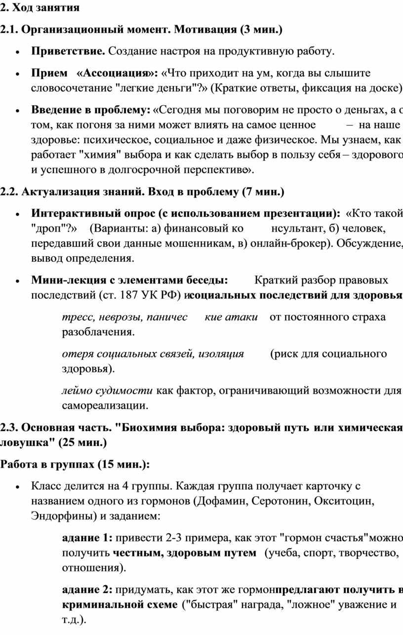 деятельности (беседа, дискуссия, групповая работа, рефлексия).