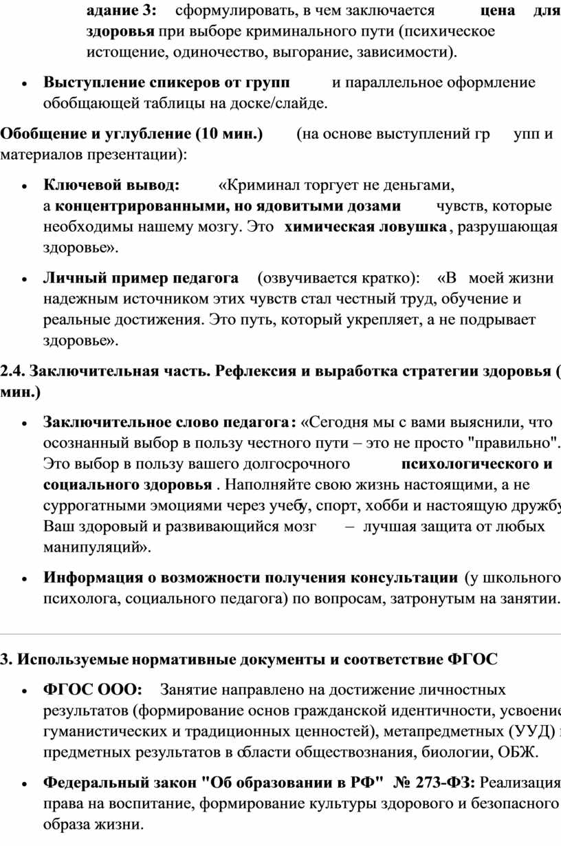 осознанным выбором, законопослушным поведением и качеством жизни; личную