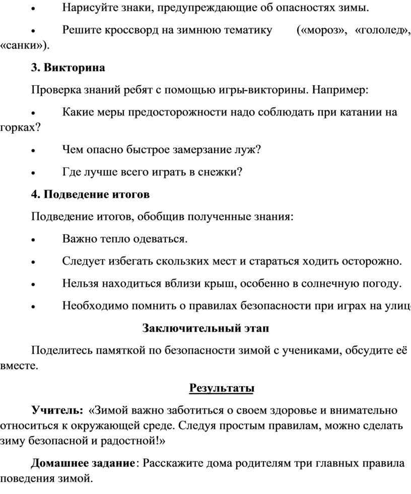 Учитель: «Зимой важно заботиться о своем здоровье и внимательно относиться к окружающей среде. Следуя простым правилам, можно сделать зиму безопасной и радостной!»