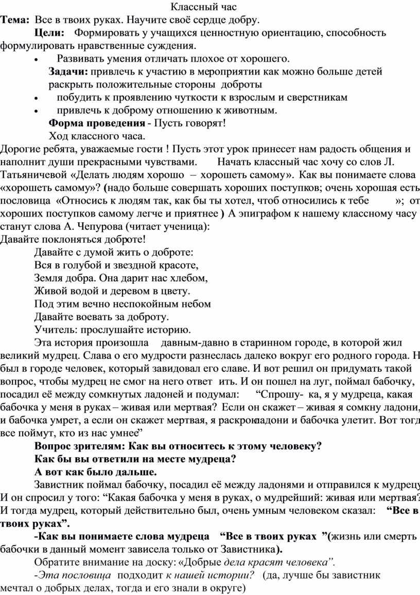 Тема: Все в твоих руках. Научите своё сердце добру.