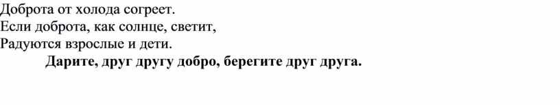 -Вы должны помнить, что на всё хорошее, что для вас делается людьми, нужно отвечать тоже добром, проявлять внимание, чуткость к взрослым и сверстникам, младшим, а так же быть добрым по отношению к животным.