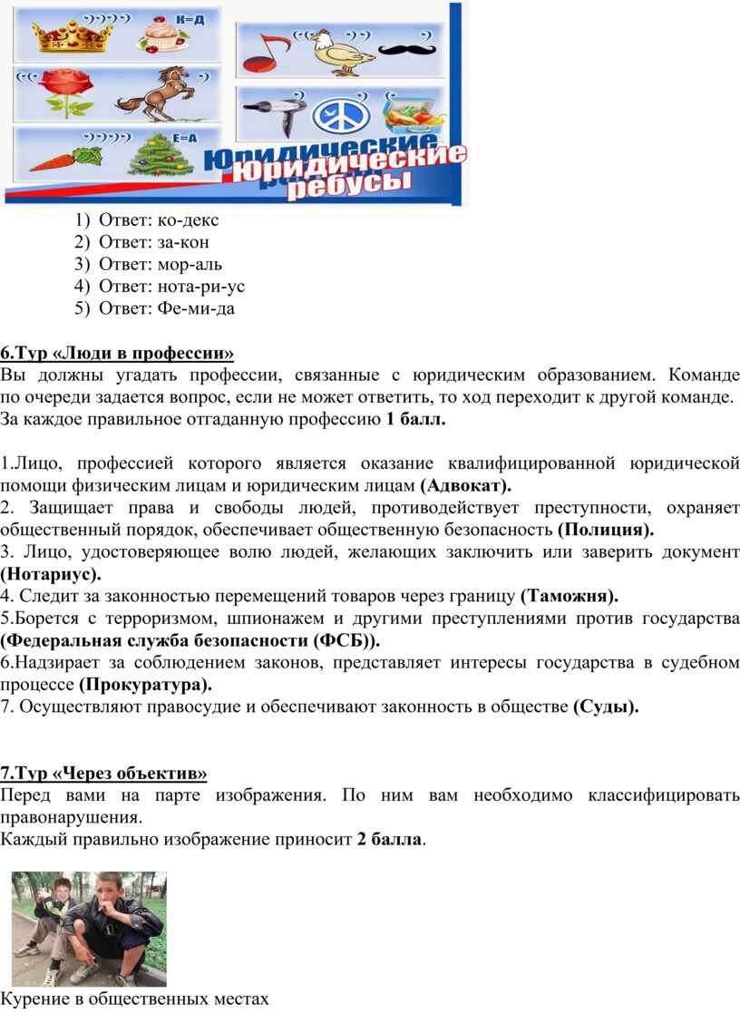 Вы должны угадать профессии, связанные с юридическим образованием. Команде по очереди задается вопрос, если не может ответить, то ход переходит к другой команде.