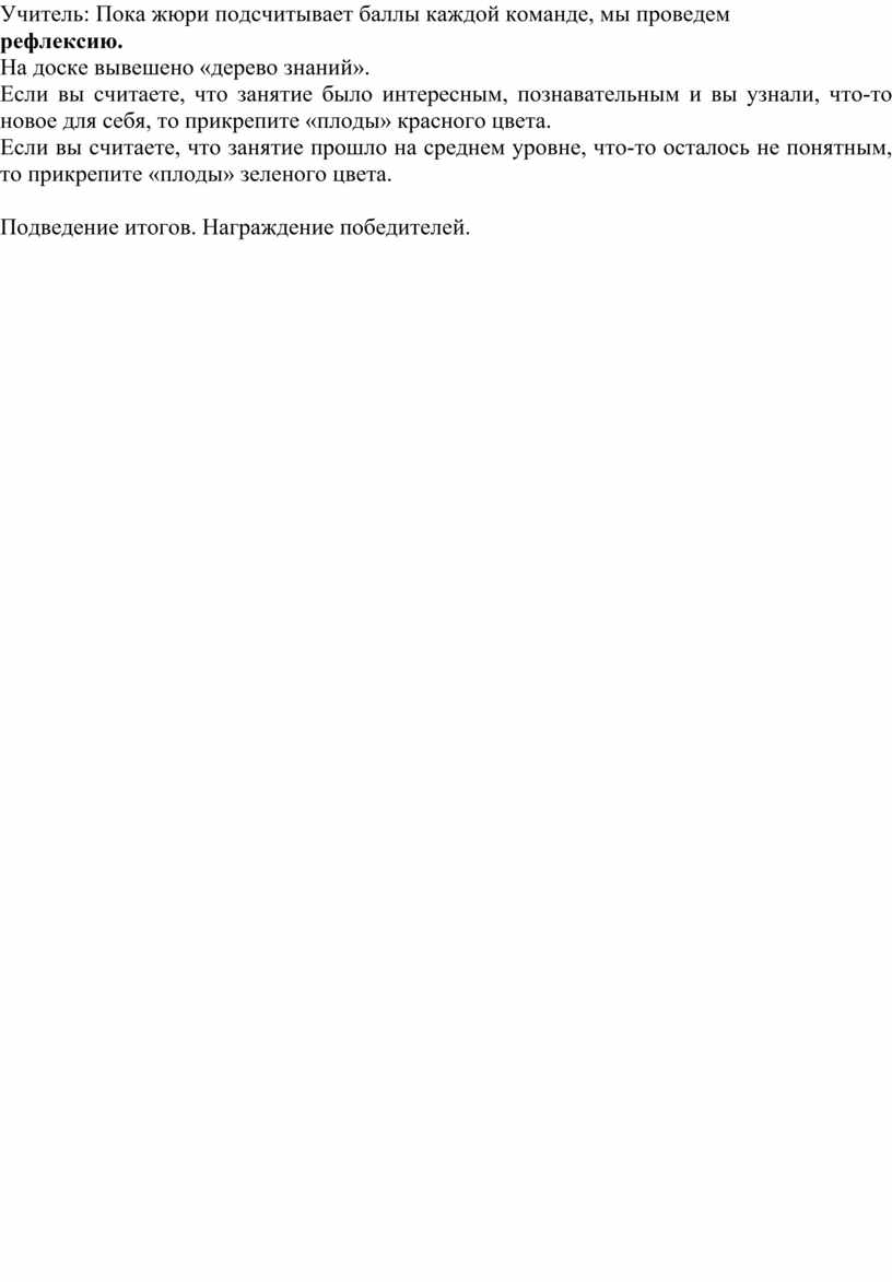 Учитель: Пока жюри подсчитывает баллы каждой команде, мы проведем