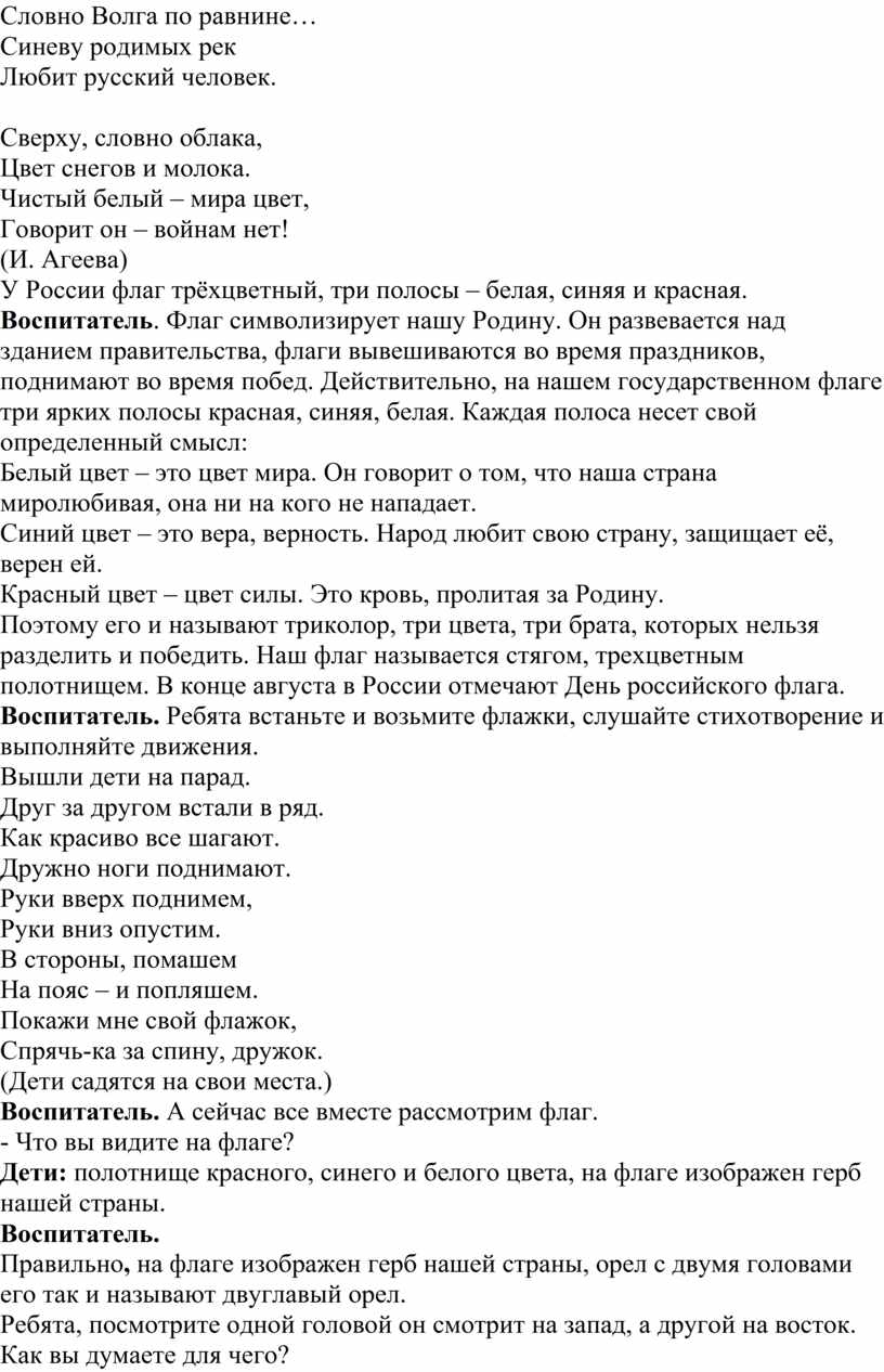 Воспитатель. Ребята встаньте и возьмите флажки, слушайте стихотворение и