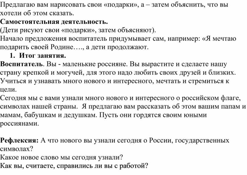 Рефлексия: А что нового вы узнали сегодня о России, государственных символах?