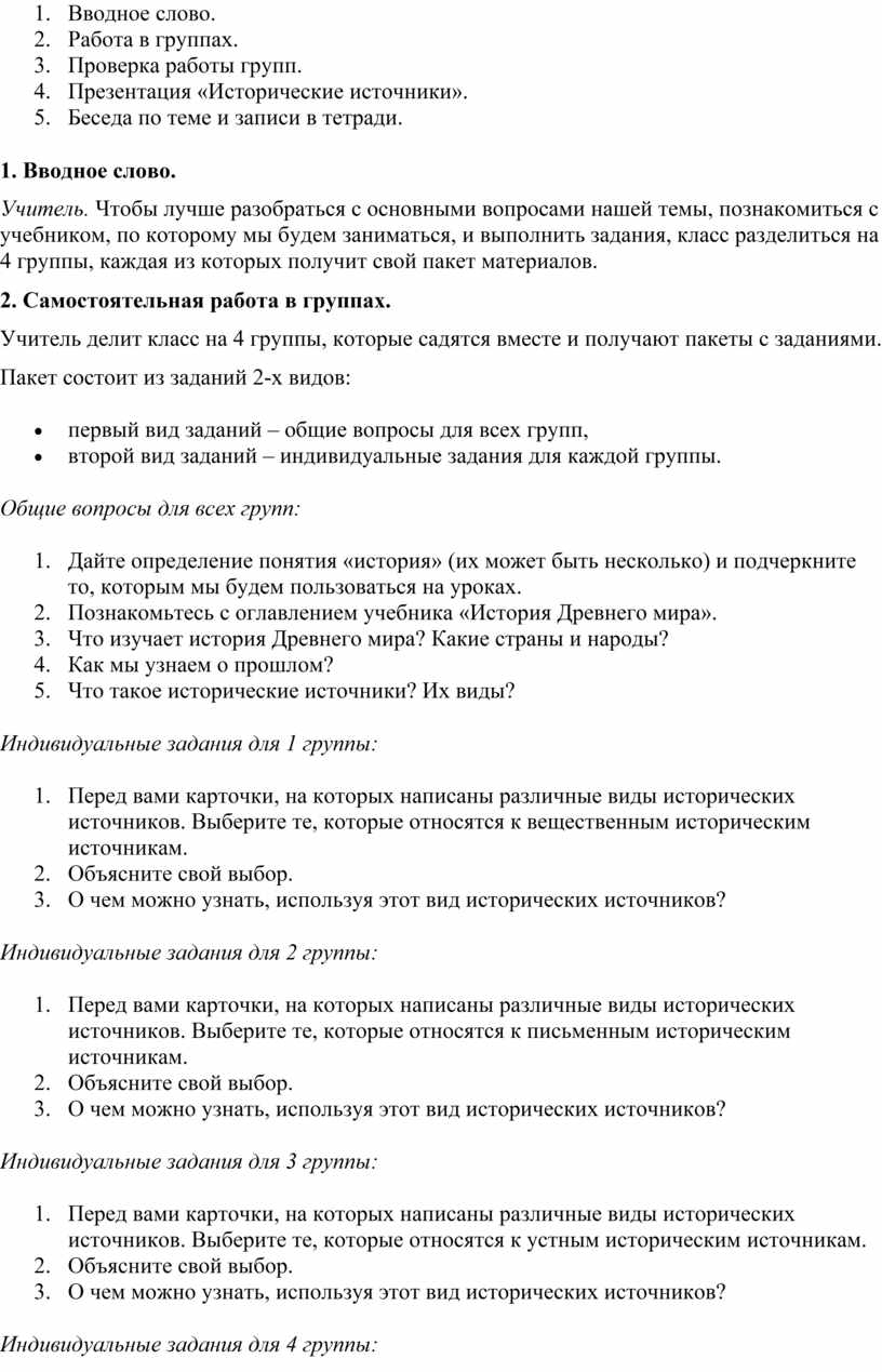 Конспект вводного урока «по истории Древнего мира». 5 класс.