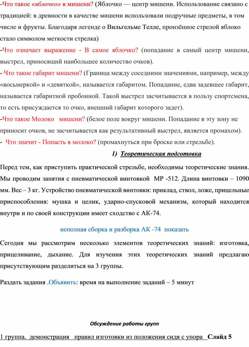 2 группа. Формулирует правила прицеливания слайд 6
