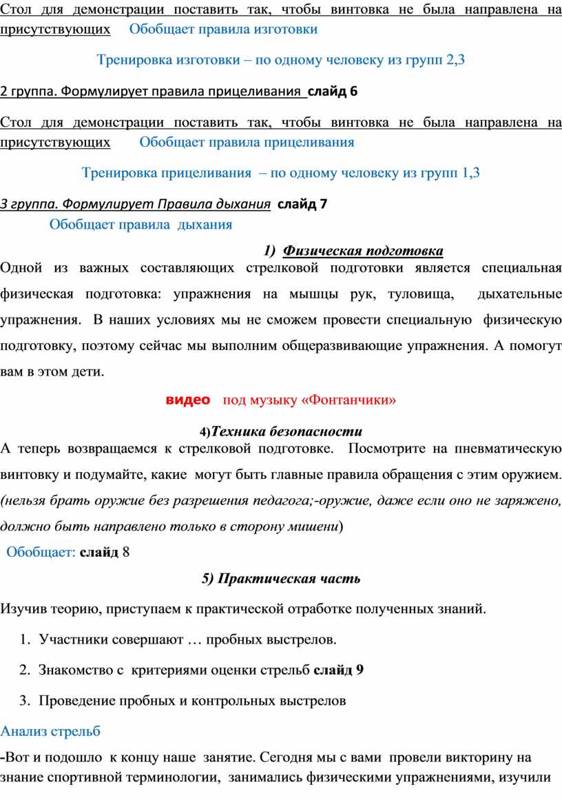 Стол для демонстрации поставить так, чтобы винтовка не была направлена на присутствующих Обобщает правила прицеливания
