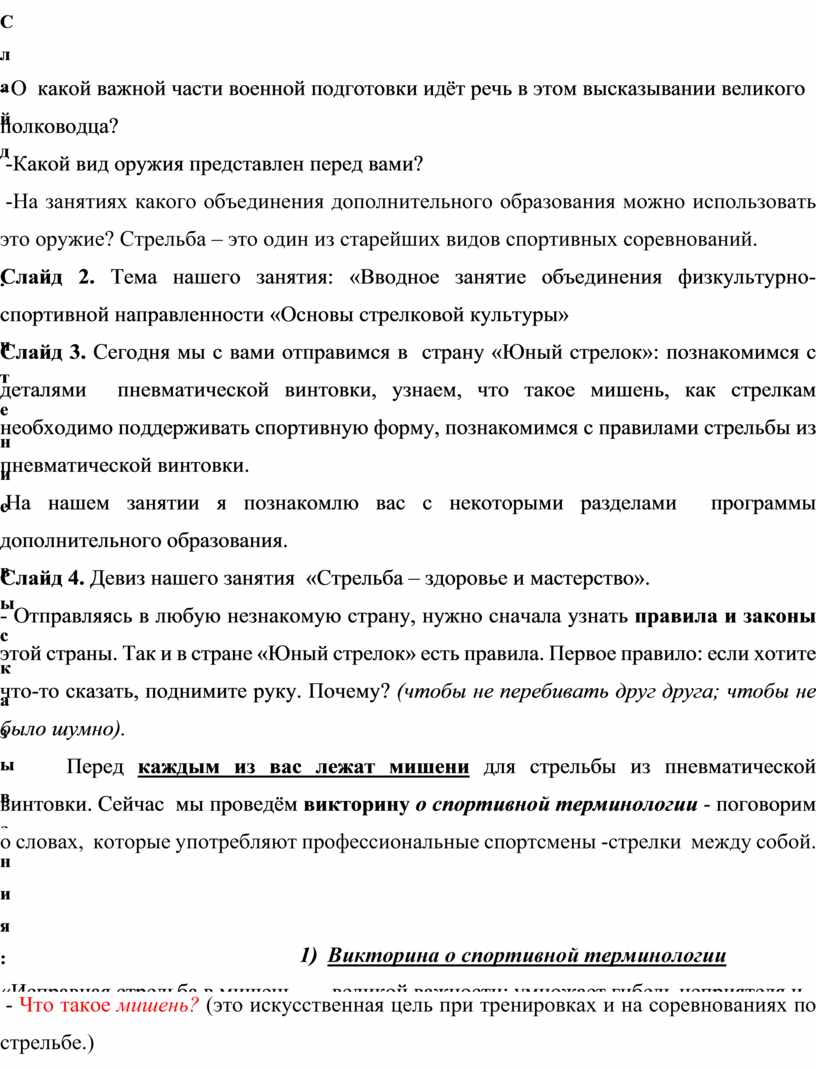 «ОСНОВЫ СТРЕЛКОВОЙ КУЛЬТУРЫ »