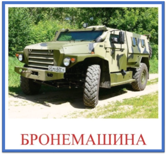 Перед детьми лежат карточки с картинками, надо определить первый звук предмета на рисунке и написать или подобрать букву. Прочитать какое слово получилось. (На экране показать военного этой профессии)