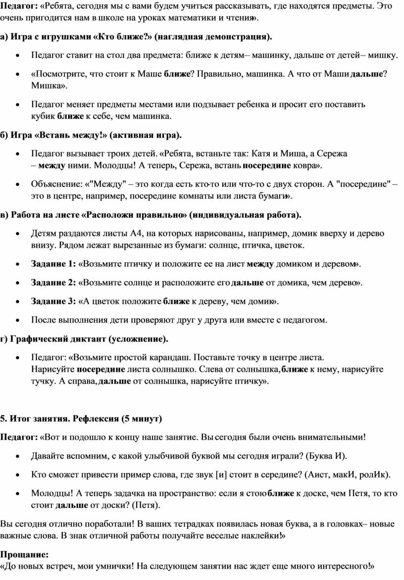 Основная часть. Второй блок: «Где что находится? Ближе, дальше, между» (20