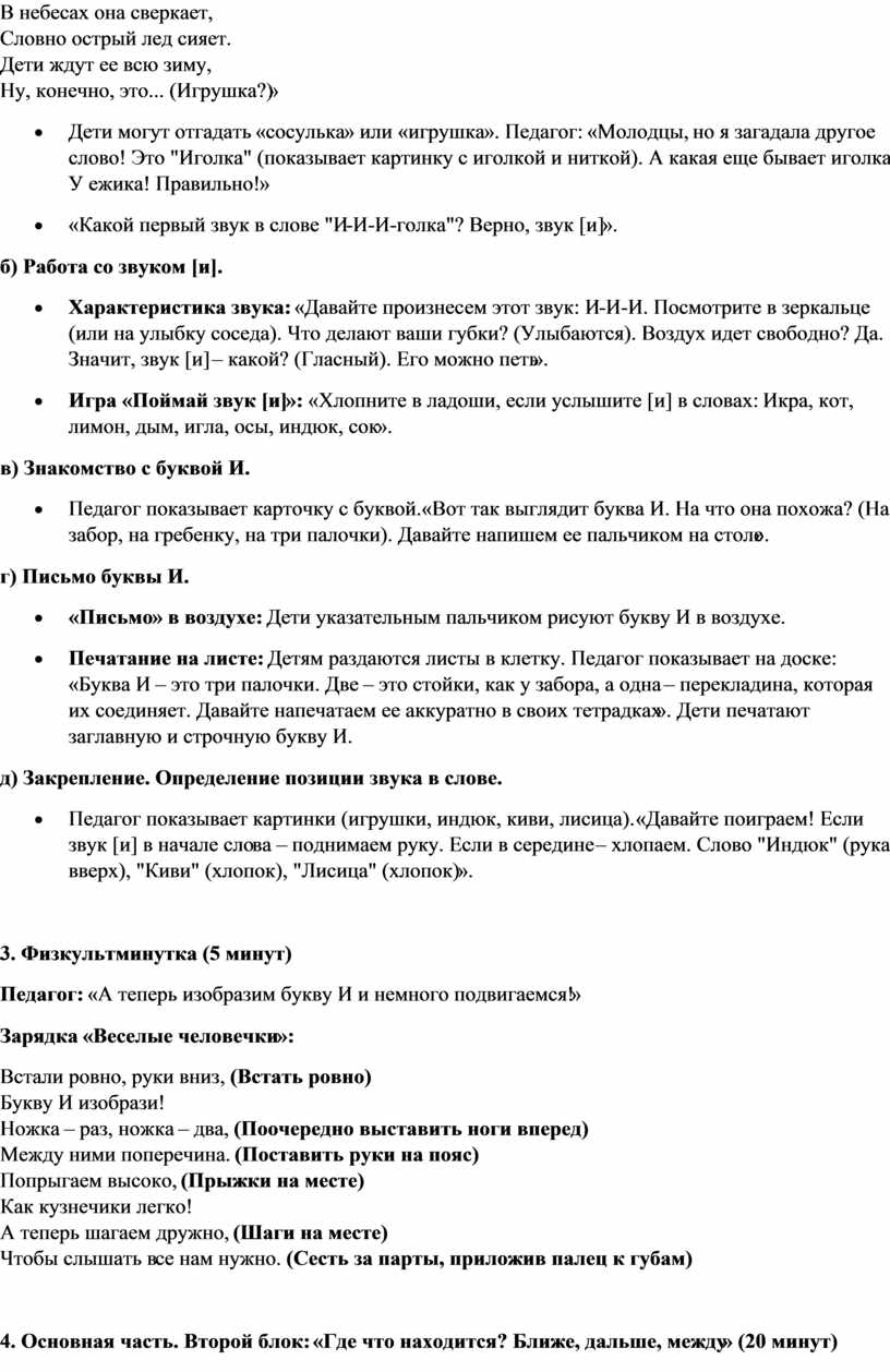 Основная часть. Первый блок: «Улыбчивая буква И» (20 минут)