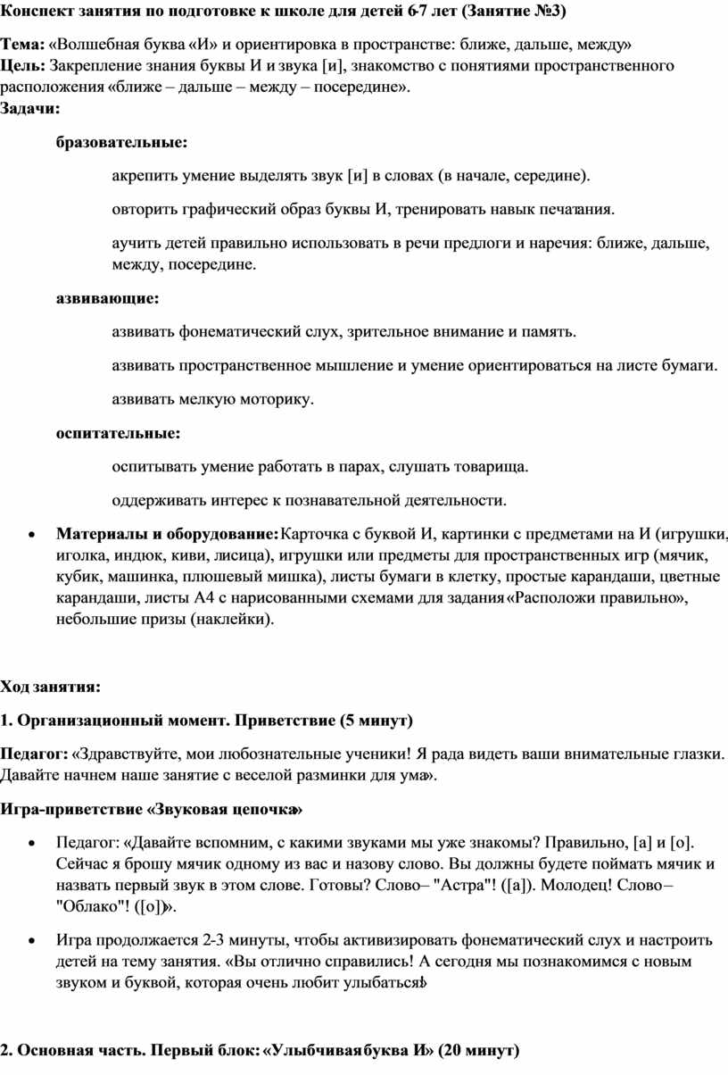 занятия по подготовке к школе для детей 6-7 лет (Занятие №3)