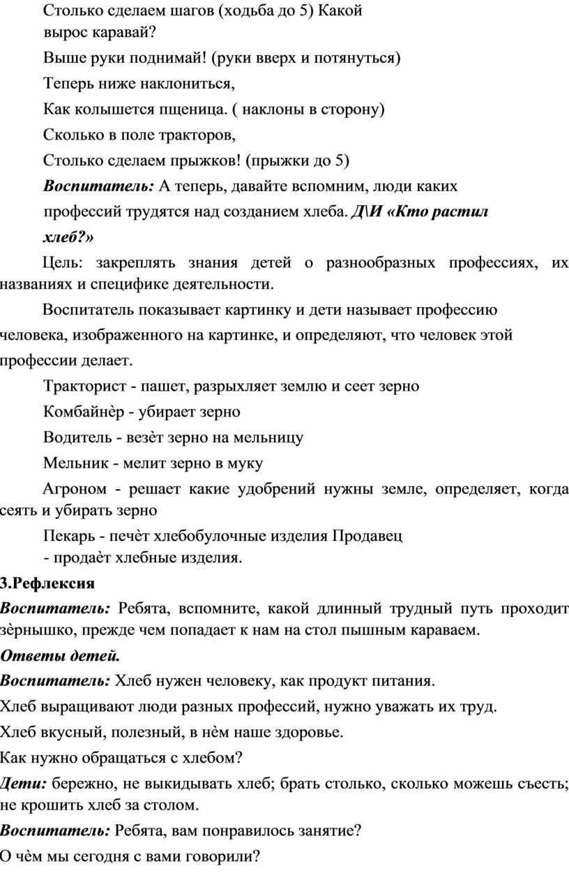 Воспитатель: А теперь, давайте вспомним, люди каких профессий трудятся над созданием хлеба. Д\И «Кто растил хлеб?»