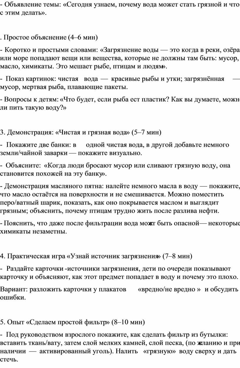 - Объявление темы: «Сегодня узнаем, почему вода может стать грязной и что с этим делать».