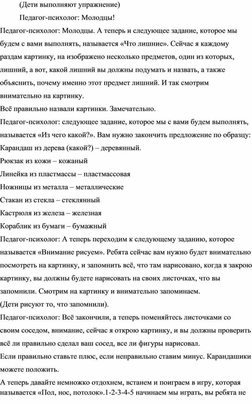 Педагог-психолог: Молодцы, все были внимательными. Присаживаетесь. А теперь давайте перейдем к следующему заданию,