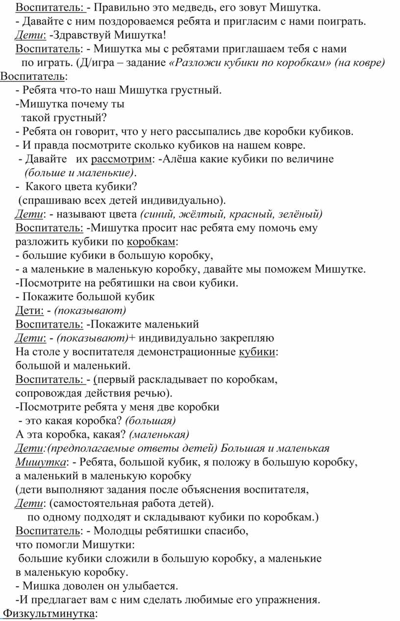 Мишутка: - Ребята, большой кубик, я положу в большую коробку,
