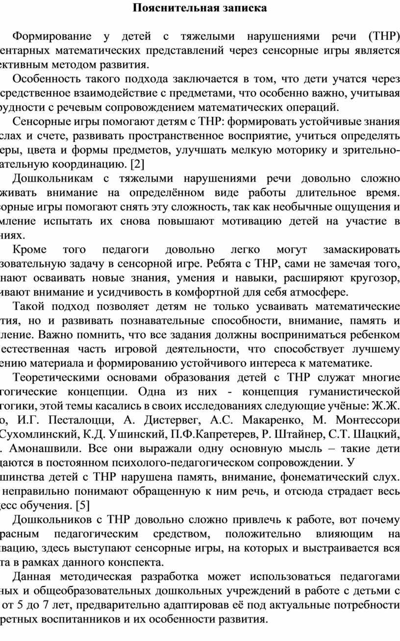 Формирование у детей с тяжелыми нарушениями речи (ТНР) элементарных математических представлений через сенсорные игры является эффективным методом развития.