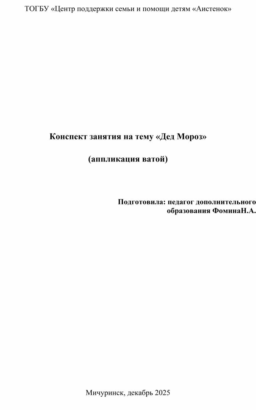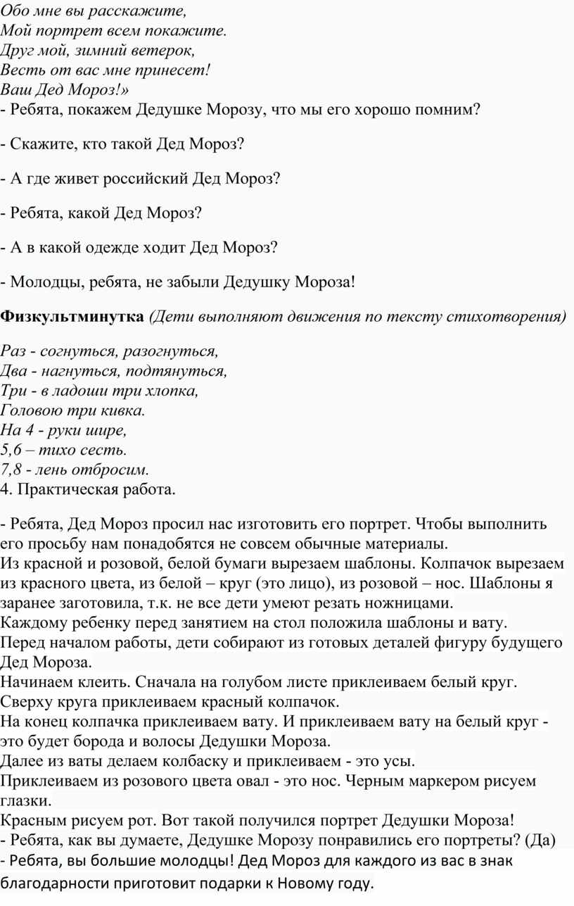 Конспект занятия на тему «Дед Мороз»