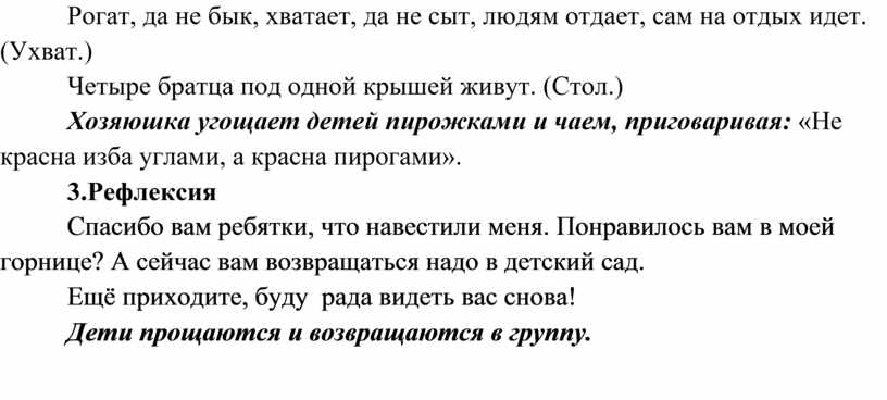 Спасибо вам ребятки, что навестили меня. Понравилось вам в моей горнице? А сейчас вам возвращаться надо в детский сад.