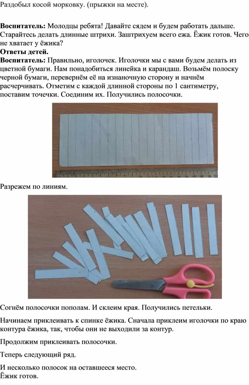 - закреплять умение нарезать полоски бумаги, быть аккуратным при работе с
