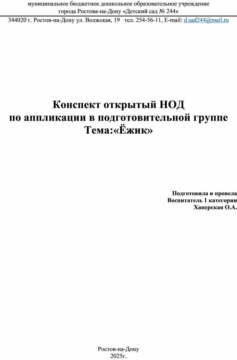 344020 г. Ростов-на-Дону ул. Волжская, 19 тел. 254-56-11, E-mail: d.sad244@mail.ru