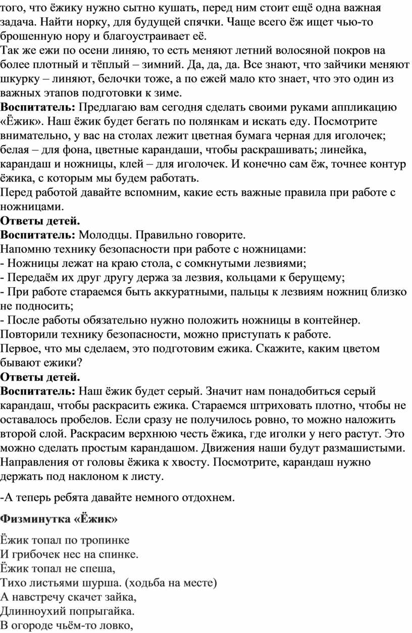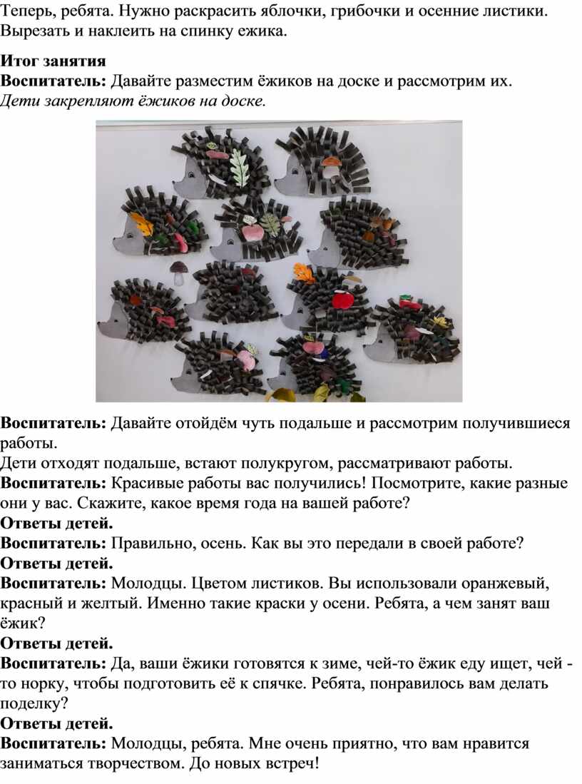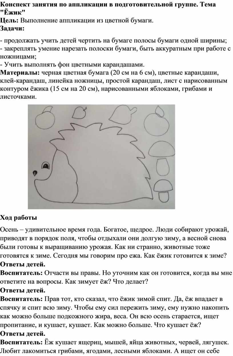 Конспект занятия по аппликации в подготовительной группе. Тема "Ёжик"