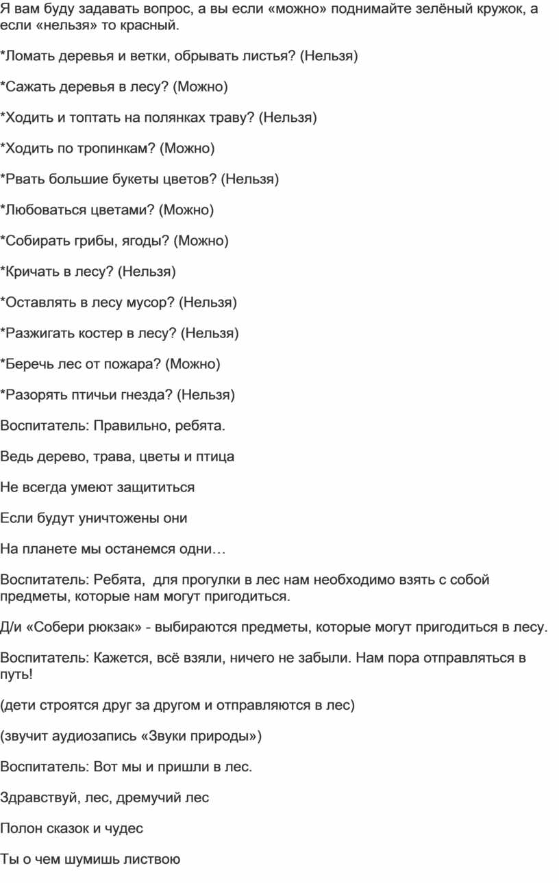*Оставлять в лесу мусор? (Нельзя)