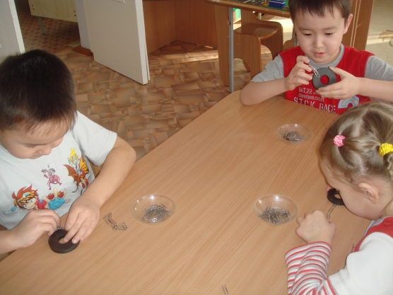Цель: ознакомление детей со свойствами магнита.