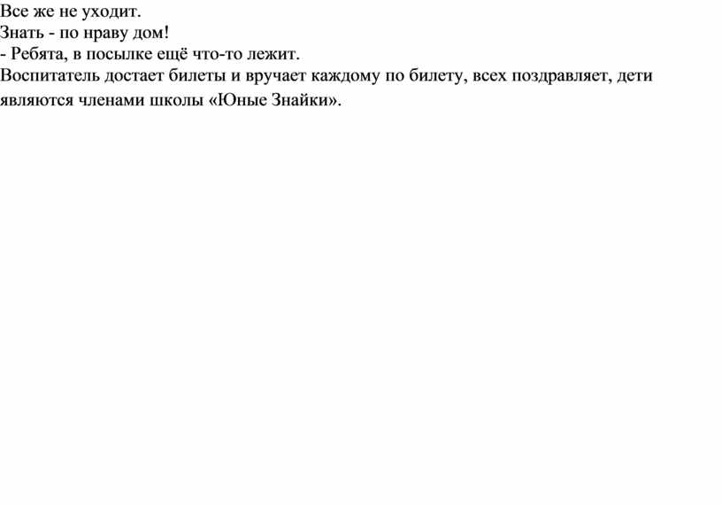 Воспитатель достает билеты и вручает каждому по билету, всех поздравляет, дети являются членами школы «Юные Знайки».