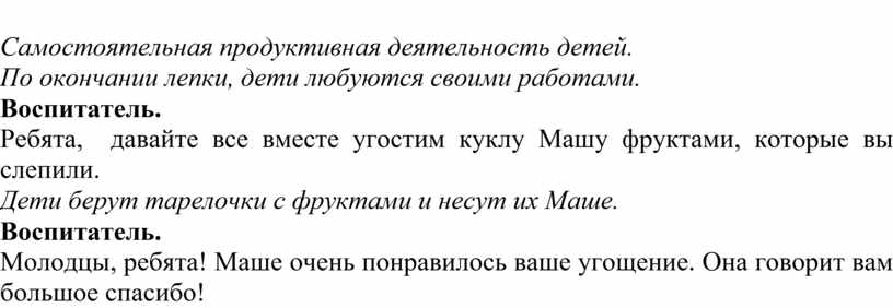 Ребята, давайте все вместе угостим куклу Машу фруктами, которые вы слепили.
