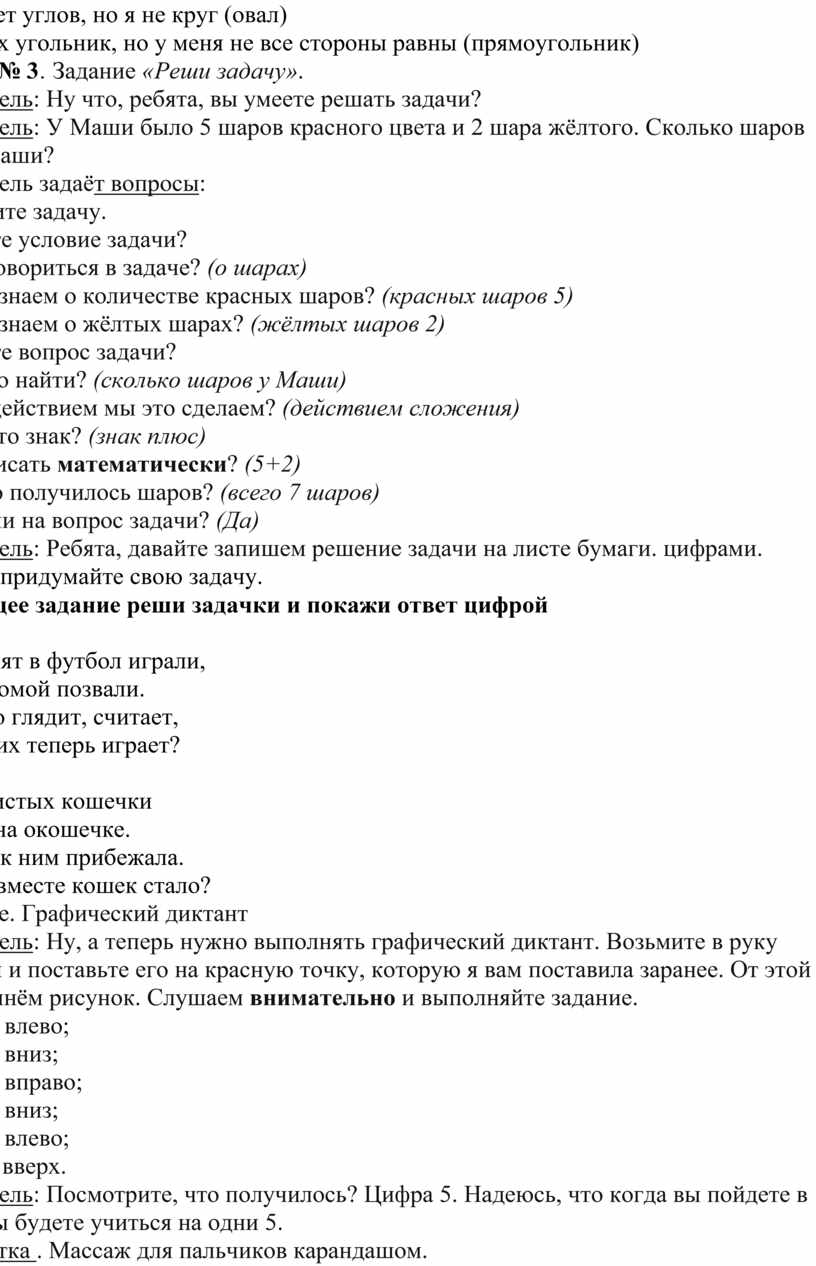 Конспект занятия по математике в подготовительной группе