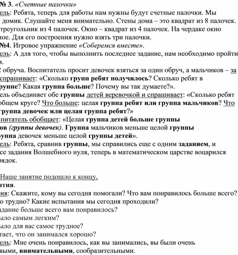 Затем воспитатель обобщает: «Целая группа детей больше группы мальчиков (группы девочек). Группа мальчиков меньше целой группы детей. Группа девочек меньше целой группы детей».