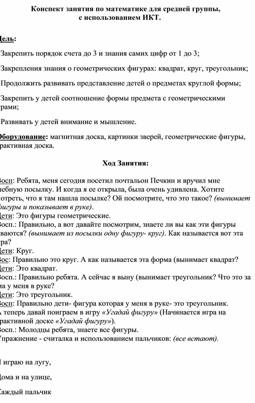 3.3 Конспект занятия по математике для средней группы, с использованием ИКТ.