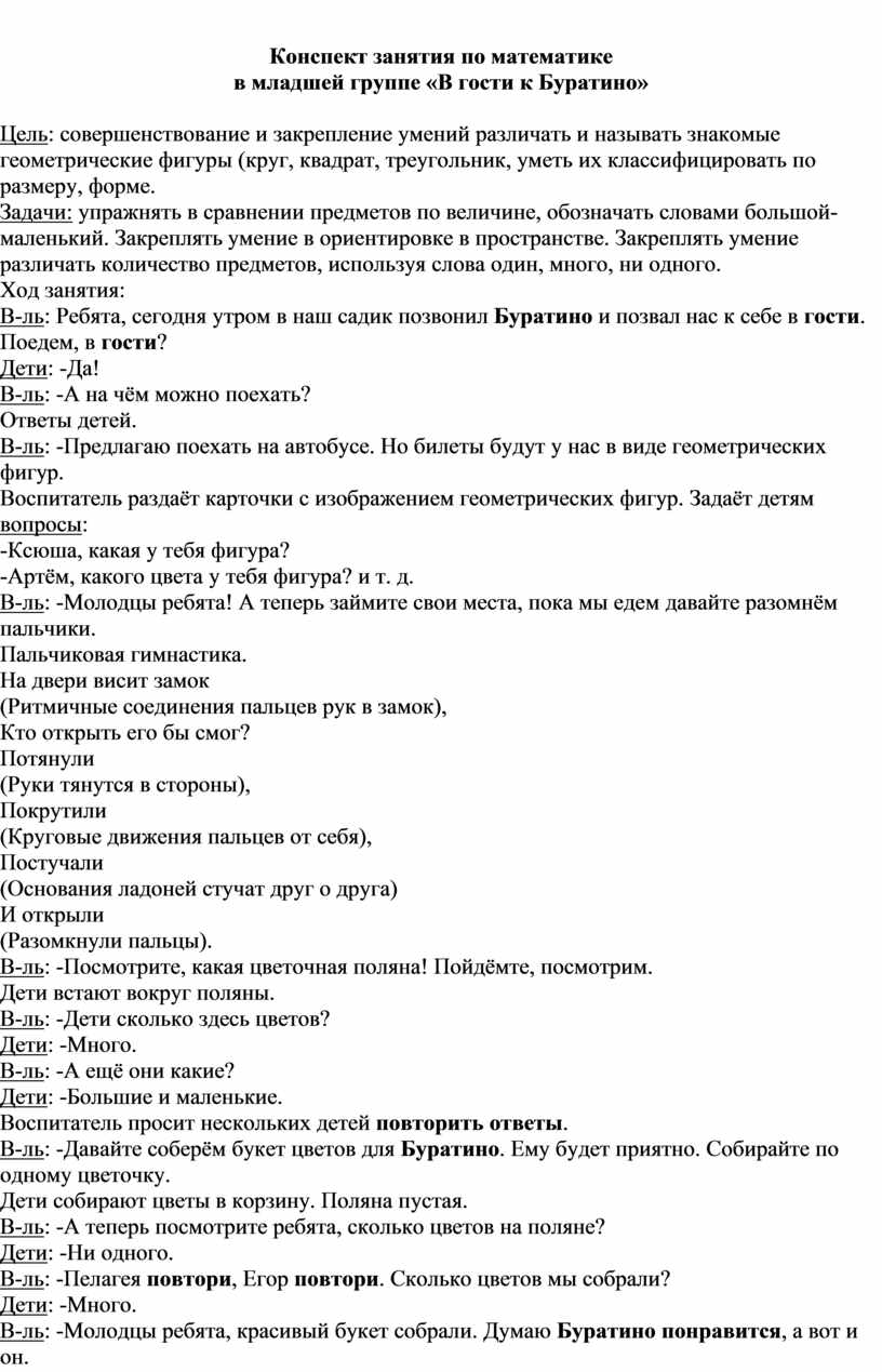 В-ль: Ребята, сегодня утром в наш садик позвонил Буратино и позвал нас к себе в гости. Поедем, в гости?