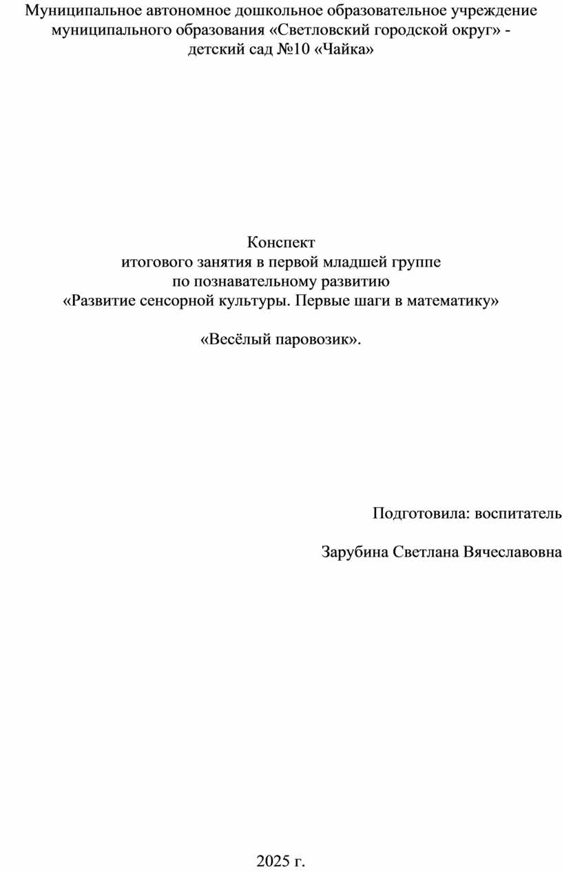 итогового занятия в первой младшей группе
