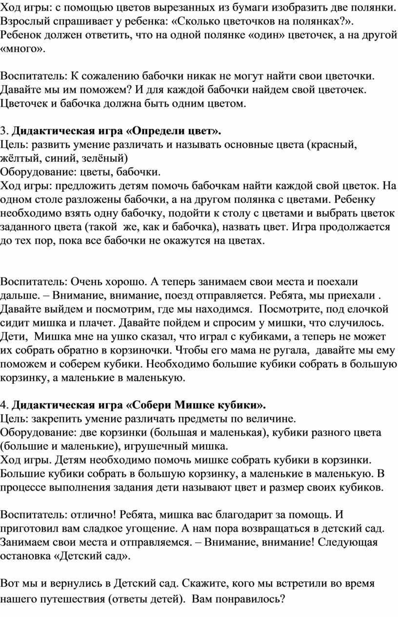 Воспитатель: молодцы! С солнышком мы поиграли. Теперь нам будет веселее путешествовать вместе с солнышком. Садимся в вагончики и наш поезд, отправляется.