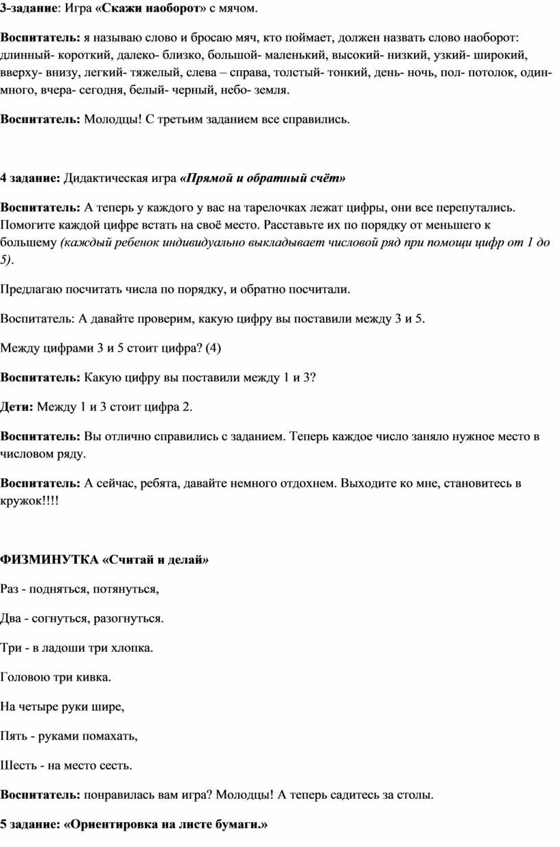4 задание: Дидактическая игра «Прямой и обратный счёт»