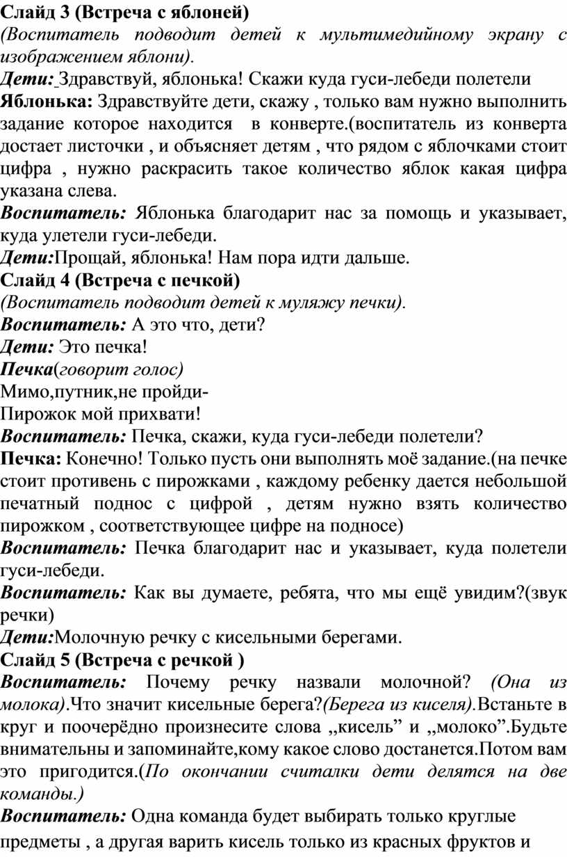 Тема: «Путешествие по сказке «Гуси-лебеди»