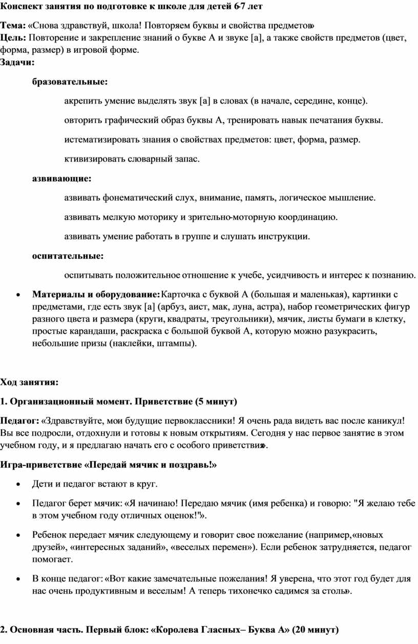 Цель: Повторение и закрепление знаний о букве А и звуке [а], а