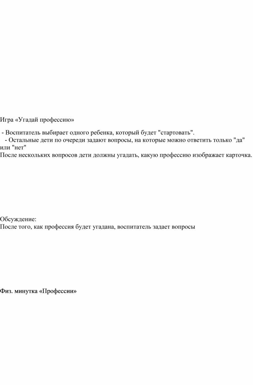 который будет "стартовать". После нескольких вопросов дети должны угадать, какую профессию изображает карточка.