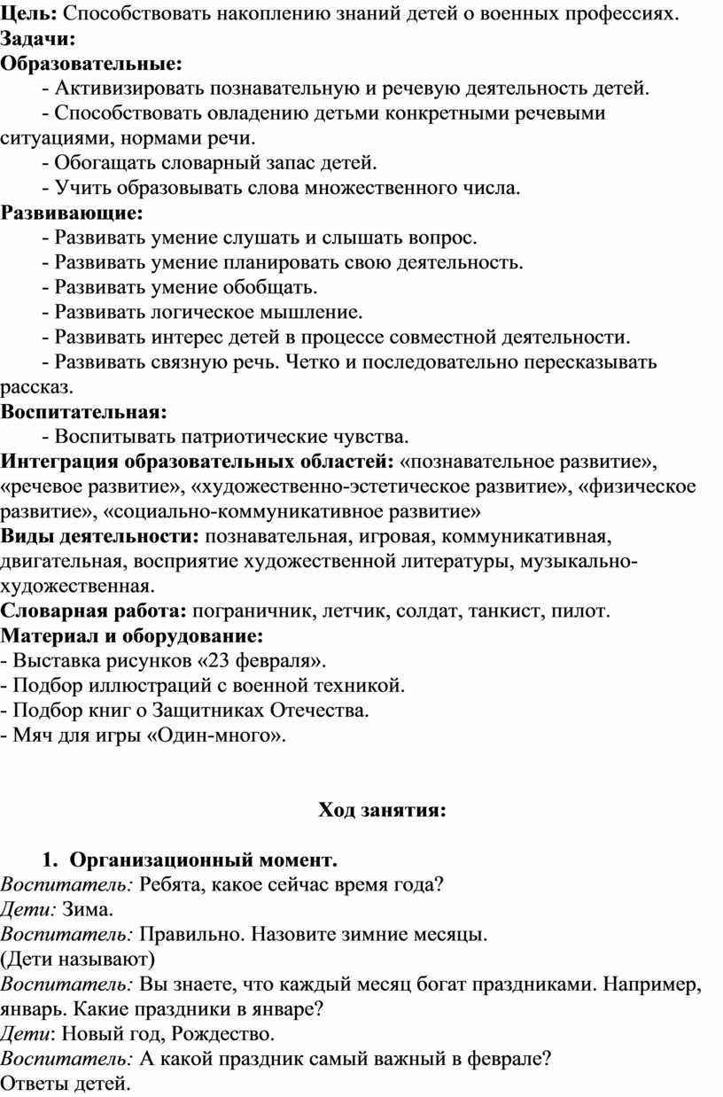 Цель: Способствовать накоплению знаний детей о военных профессиях.