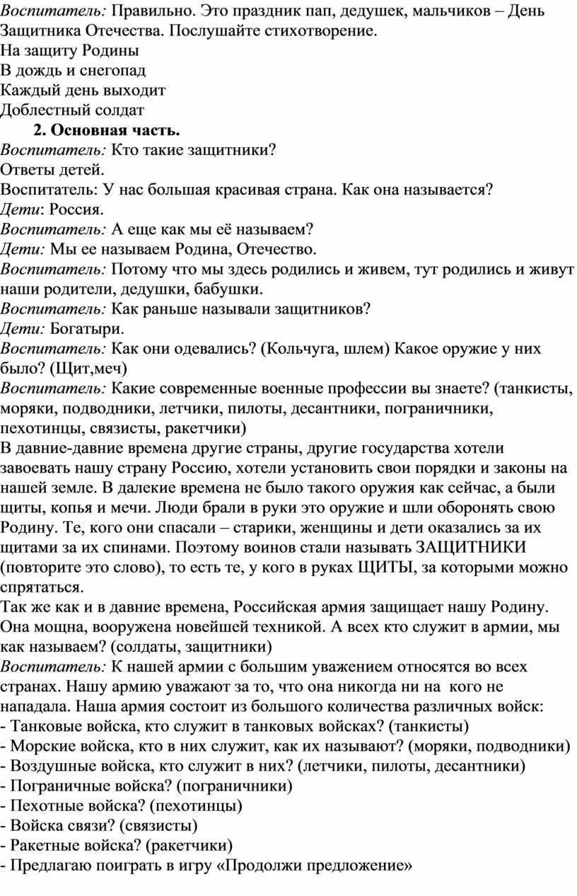 Воспитатель: Правильно. Это праздник пап, дедушек, мальчиков – День Защитника Отечества. Послушайте стихотворение.