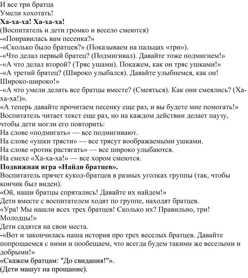 -«А что умели делать все братцы вместе? (Смеяться). Как они смеялись? (Ха-ха-ха!)».