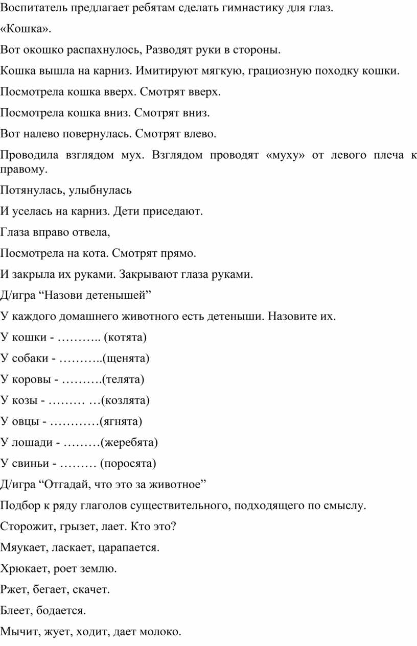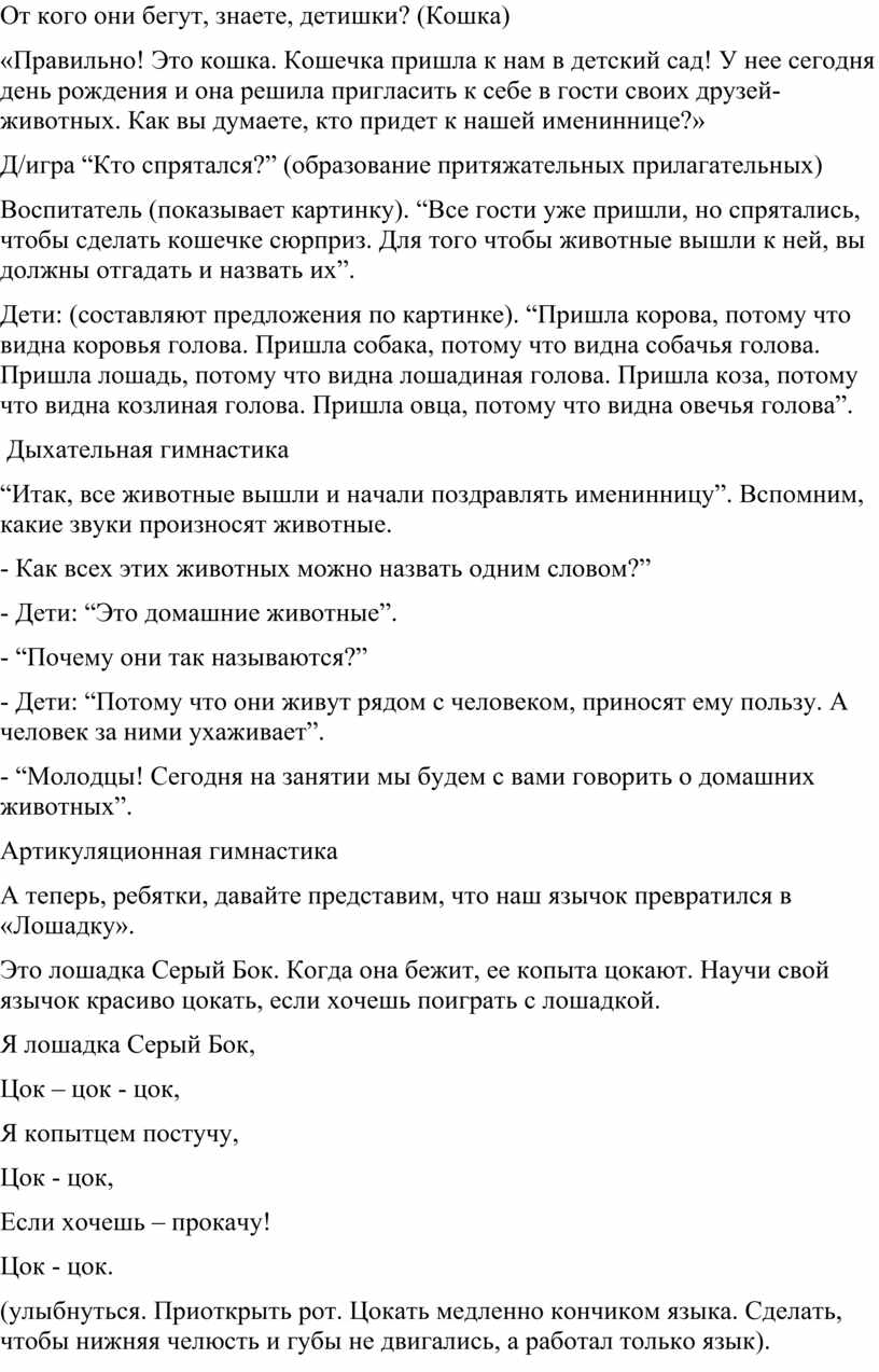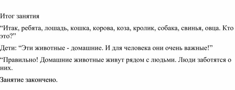 - “Молодцы! Сегодня на занятии мы будем с вами говорить о домашних животных”.
