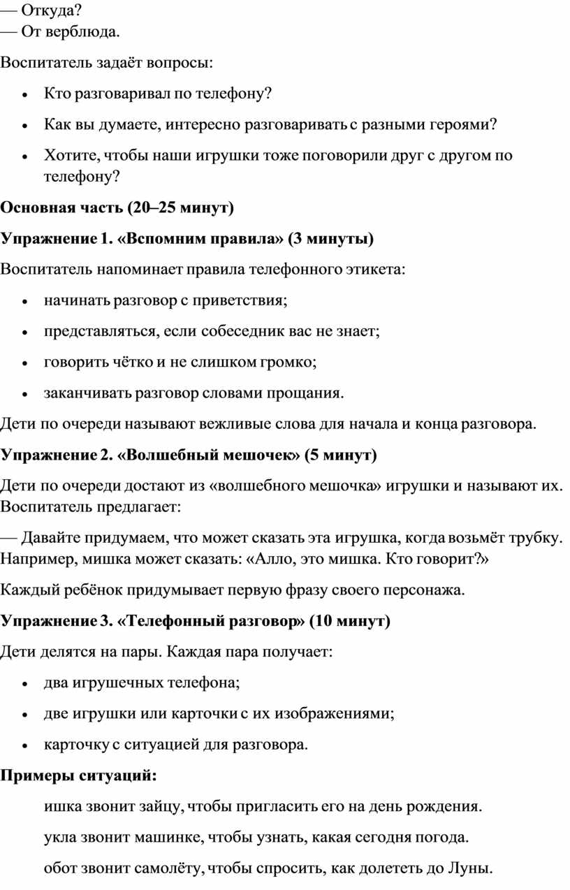 Воспитатель напоминает правила телефонного этикета:
