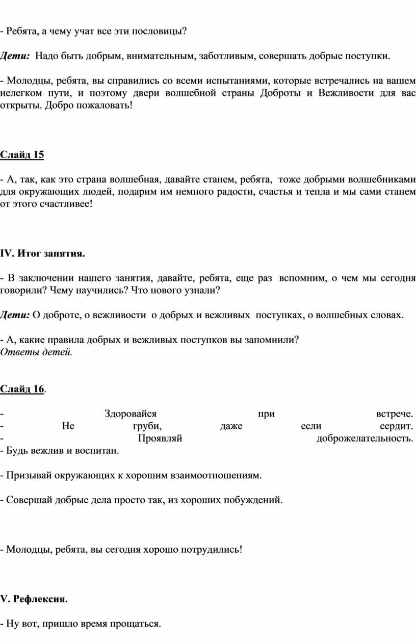 IV. Итог занятия: - В заключении нашего занятия, давайте, ребята, еще раз вспомним правила вежливости.